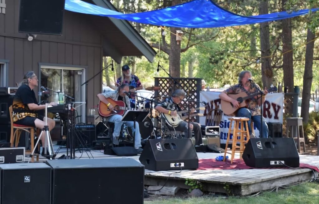 It’s an intimate outdoor private party in a beautiful setting. The theme is music VARIETY; held at DiamondStone Guest Lodges, between La Pine & Sunriver. Some performers this year will be “Mountaintop Sound” and “J Brothers” from Southern Oregon. Central Oregon’s lively upbeat “Victory Swig” returns! Professional sound by Bluejay Productions.